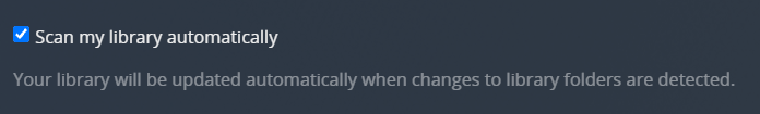In some cases, an operating system may not support this trigger - for example, if your storage is mounted on a network (SMB/NFS/Cloud Storage). In other cases, you may just find that your library doesn't automatically scan on its own. In these cases, you could consider using autoscan. IBRACORP (A Youtube channel we collaborate with) has a video explaining it in further detail.