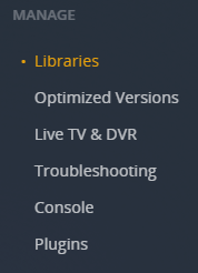 Here you will find the libraries you've added to your Plex Media Server.