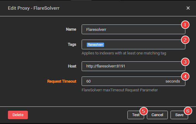 • A FlareSolverr Proxy will only be used for requests if and only if the Proxy and the Indexer have matching tags